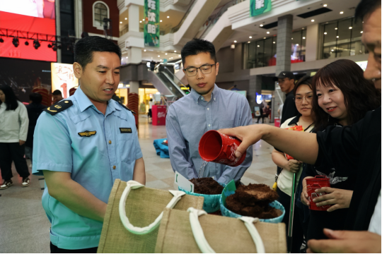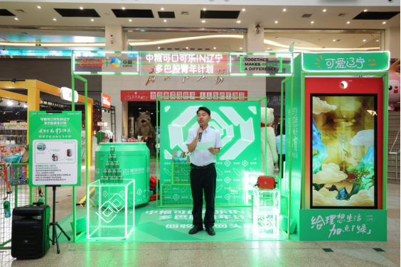 服务日正式开营,致力城市实践,来自沈阳市经济技术开发区生态环境分局的专家率先为市民重点科普了“无废城市”建设的专业知识。随后,可小爱环保社团的青年志愿者们聚合在给理想生活加点“绿”为主题的环保充电站中,依托回收饮料瓶再生潮品为主体的可持续包装概念展、辽宁生物多样性保护知识科普服务、打包一小块地球一起种草以及快乐的北极熊IP互动等,为市民及国内外游客提供了丰富多彩的沉浸式环保科普体验。
