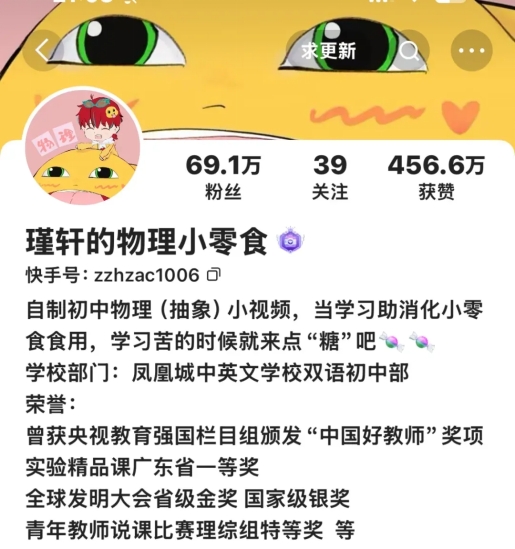 学生们纷纷在评论区留言:“原来物理可以这么好玩!”有的家长甚至说,孩子因为他的视频第一次主动要求学习物理。张振豪常说:“我的视频像小零食,虽然份量不大,但能勾起学习兴趣。”正因为这种创新,他获得了“2025快手光合年度影响力创作者”的荣誉,这也是快手平台对教育创作者价值的认可。