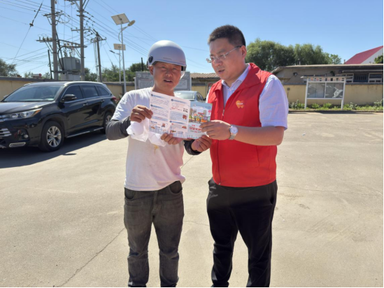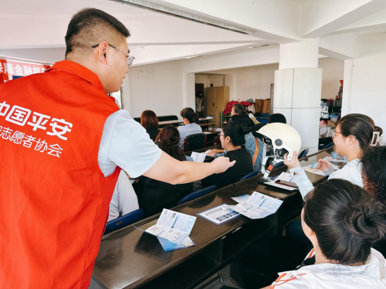 2025年9月18日, 平安产险葫芦岛中心支公司携手龙港分局共同开展了丰富多彩的“五进入”活动,第一站到兴化社区党群服务中心,平安产险葫芦岛中心支公司客服理赔部骆超经理为广大社区的人民发放折页,普及金融知识,为村民上了一节生动有趣的金融教育宣传课,并为广大村民普及道路安全知识,为群众们发放安全头盔,践行企业的社会责任。