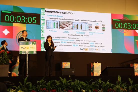 据团队成员介绍,智能技术的应用,不仅让生猪疾病预警提前了7天,也极大地提升了人工效率,目前在育肥阶段,1名饲养员一年可以饲养1万头猪。“我们希望用数字技术重塑养猪业,携手全球同行打造更高效、更便捷的养猪模式。目前的实践表明,我们的解决方案具有可观的回报,研发上每投入1元人民币,便能产生7元人民币的回报。”“牧原云计算”团队成员在路演决赛时表示。