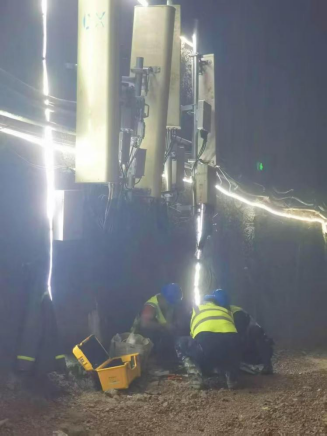 厂区内大型机械作业施工造成光缆多次被刮断,为保障基站稳定运行,辽宁移动成立专项保障队伍,进行7*24小时通信保障。团队成员多次深夜冒雨紧急抢修光缆、快速排除设备隐患,在最短时间内恢复通信,以“关键时刻顶得上、危急关头靠得住”的实际行动,彰显了通信守护者的顽强作风和专业素养。