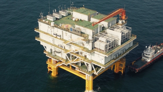 大连市庄河市海上风电场距离沿岸陆地29公里,距离最近岛屿基站17.14公里,因其所在位置为信号覆盖的盲区,风电场的工作人员以及周边海域的过往船只处于“失联”的状态。5G信号缺失对风机运行状态数据实时传输到岸上监控中心以及技术人员远程调试维护带来了不小的挑战。基站建设已刻不容缓,但海上建设基站面临着土建、传输线路、电力引入施工难度大的问题,海域5G基站的建设具有重大困难。辽宁移动经充分研究,在三峡新能源大连发电有限公司、华能(庄河)风力发电有限责任公司的大力支持下初步选址在海上风电场的指挥调度中心建设基站。利用海上风电场作为基站站址,实现了通信基础设施与可再生能源的有机结合,既解决了海上基站建设站址难的问题,又促进了海上风电产业的发展,同时解决了海上风电场以及周边海域信号覆盖的问题,有效提升综合效益,为海上风电场的工作人员以及周边渔民等作业人员带来了生活和工作上的便利。海上风电场为基站提供了稳定可靠的电力供应,降低了基站建设和运营的成本。