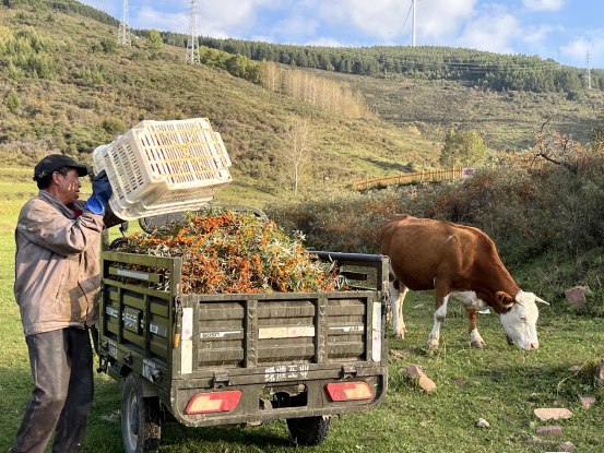 目前,“野山坡”所用的沙棘果,大部分是野生的。每年秋收后,当地年纪较大、未外出务工的村民便上山采收沙棘。“这项工作让当地村民在农闲时节也能持续获得收入。”张贵鑫说,“我们每年能帮助3000多户农户,每户增收两三万元。”