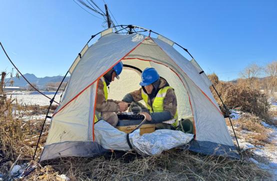 这是葫芦岛移动的施工作业现场,他们租用当地红喜事庆典保温棚,搭建起临时“保温施工舱”,隔绝严寒,辅以电取暖器精准调控棚内温度,为混凝土浇筑和养护创造了适宜环境。他们创新采用的“民俗设施+科技控温”方案,有效破解冬季混凝土养护难题。保障了汇聚机房地基施工的精准度和稳定性,确保了关键基础设施建设的顺利进行。