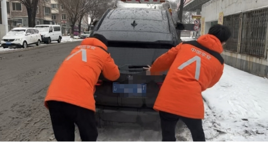 鞍山地区降雪导致路面严重结冰,理赔员解明君在赶赴现场途中,目睹一辆汽车在陡坡上轮胎空转、进退两难的困境。他立即停车,冒着寒风,俯身帮助推车。经过数次尝试,车辆终于成功脱困。这一幕被路过的市民拍下,在社交平台上获得大量点赞,有网友留言:“这抹橙色,是今天鞍山最暖的颜色。”