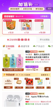 ▲从拼多多首页进入百亿补贴,分别点击加倍补专区、消费券专区即可参与活动。