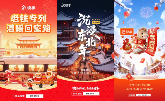 而在2月15日19:30,快手冠名的“2026辽宁春晚”,以“万家灯火共团圆”为主题,汇集众多歌曲、综艺、小品大咖,将带来一场兼具笑点与温情的视听盛宴,陪伴用户共度团圆夜。