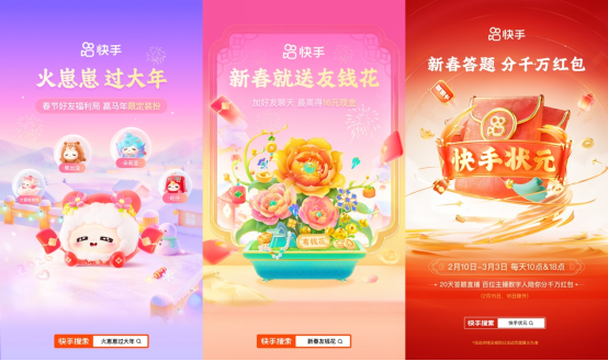 趣味直播与游戏也有新玩法。春节活动期间,快手直播“快手状元”系列答题活动上线,超百位依托可灵技术生成的主播AI数字人全程陪伴答题,热闹互动之余,发放现金福利,更有2场央视网联名专场,学知识过新春。快手游戏“新春玩家狂欢节”也已高能开启,50余家热门游戏厂商与头部主播组成“发福天团”,限定皮肤、稀有道具、点券红包狂送,让玩家们实现春节游戏心愿自由,更有“头号玩家”集卡抽大奖,幸运儿可包揽超高额特定奖品。