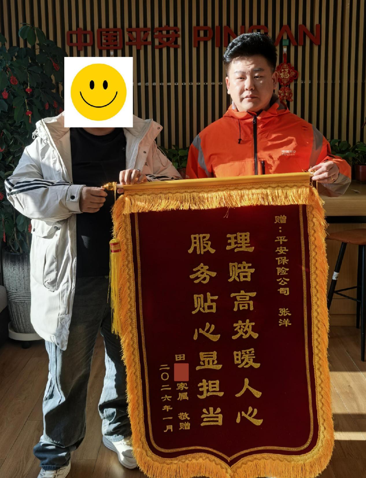 理赔结束后,家属专程赠送锦旗,上书“理赔高效暖人心 服务贴心显担当”,盛赞平安产险葫芦岛中心支公司理赔员张洋“用专业化解困境,以温度传递希望”。