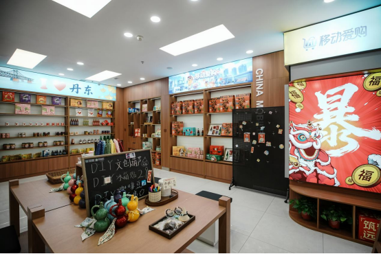三是服务场景升级,潮趣多元。打破营业厅单一通信业务边界,融合特色生活和文旅服务,二楼文旅生态体验区亮点纷呈:东北首家咪咕咖啡潮玩体验店打造休闲社交空间;东北首个咪咕未来空间XR体验馆依托5G-A网络提供沉浸式交互体验;丹东文旅超市专区汇聚本地特色产品,打卡墙融入丹东边城文化元素,让营业厅成为集服务、体验、休闲、