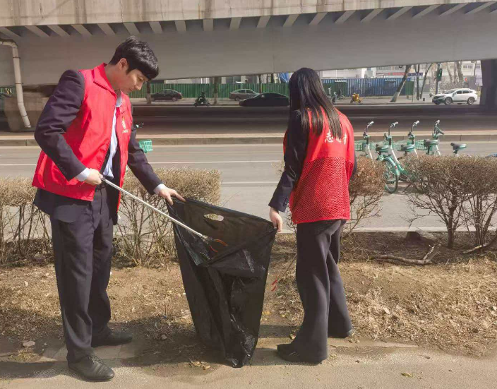 活动当天,支行党员志愿者们身着统一的红色志愿马甲,手持垃圾夹、垃圾袋等工具,在社区工作人员的带领下,对社区周边道路、绿化带及公共区域进行了全面的环境卫生清理。大家分工协作、干劲十足,不放过任何一处卫生死角,认真捡拾路面烟头、白色垃圾、枯枝落叶等杂物,用双手为社区居民营造了干净整洁的生活环境。