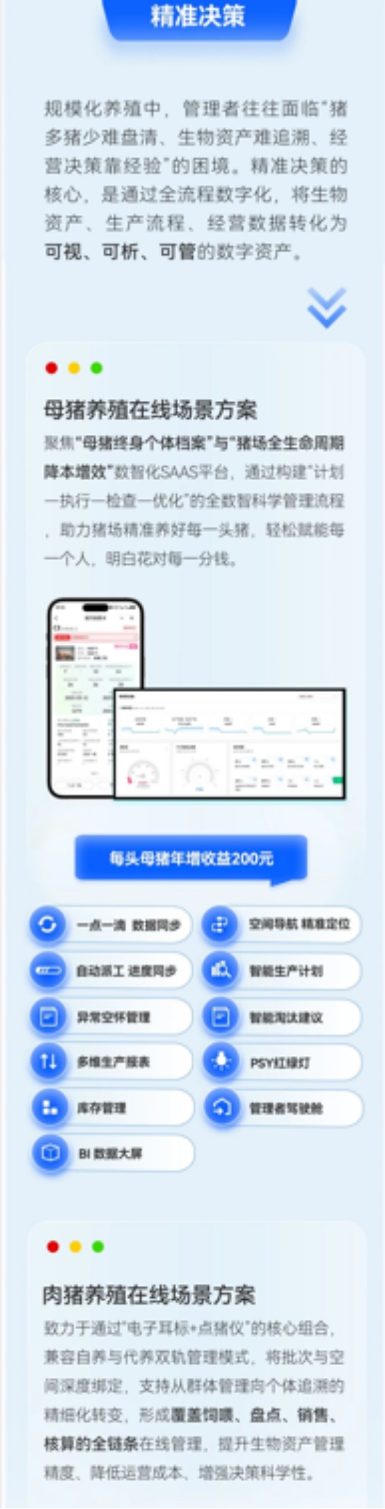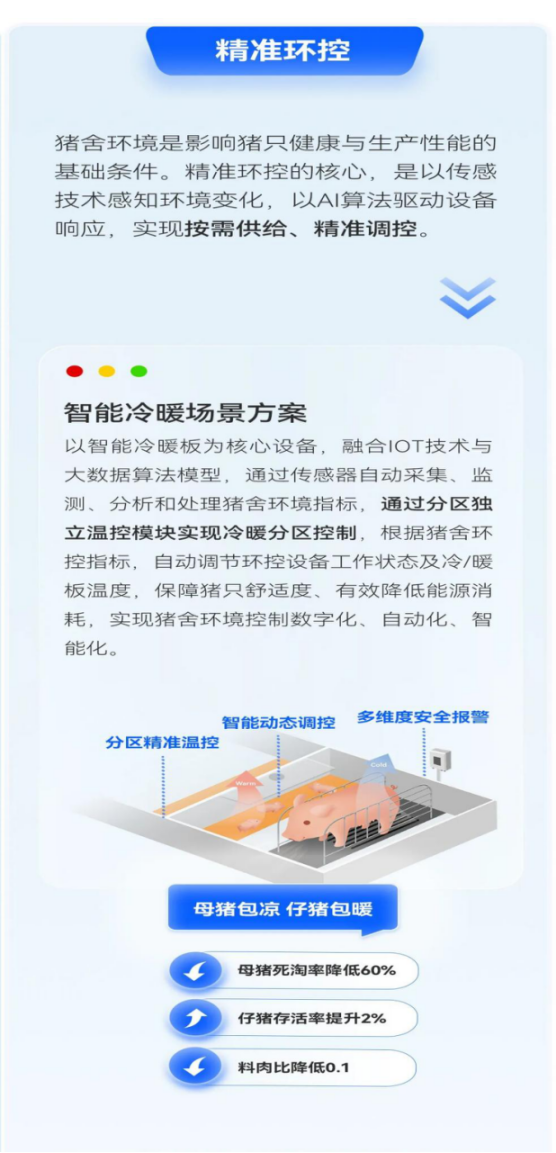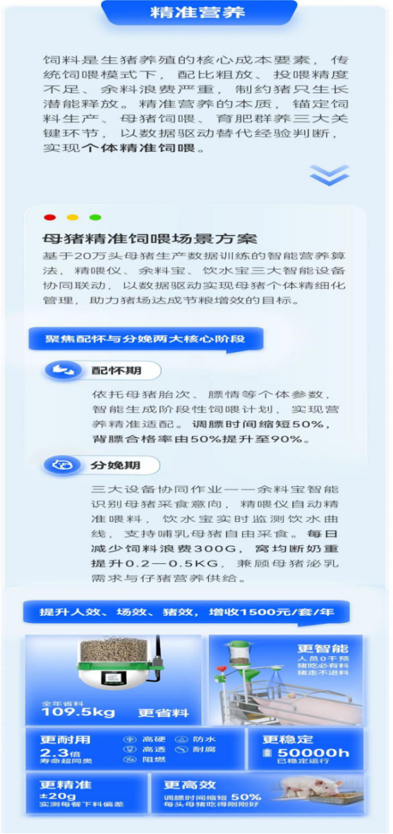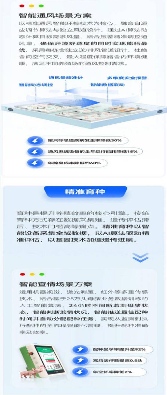 正是基于这份技术积累与服务体量,我们从真实业务场景中不断总结、提炼,迭代出了覆盖猪场全链路5大精准领域和11大场景解决方案。